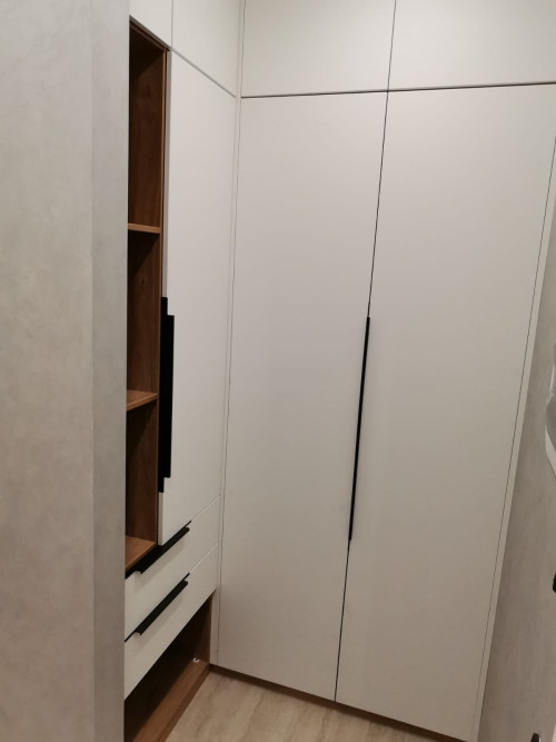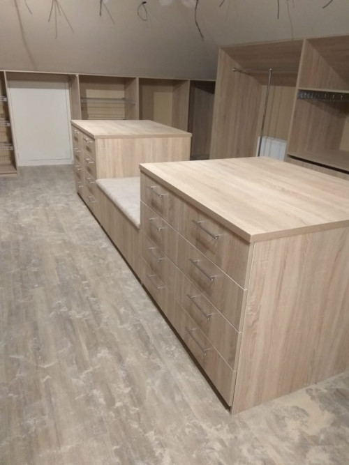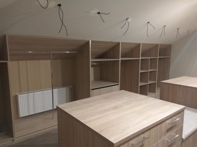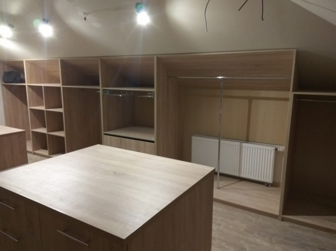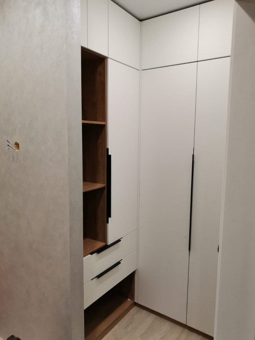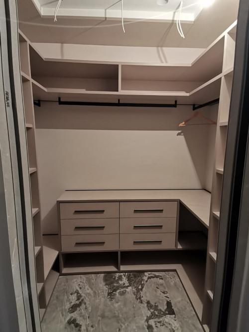 Вы можете выбрать материалы для изготовления гардеробных, такие как натуральное дерево, ЛДСП, МДФ, пластик, жидкий металл и другие материалы. Также вы можете выбрать размер, конфигурацию и дизайн вашей гардеробной. После изготовления гардеробной на заказ, наши специалисты установят ее у вас дома или офисе.